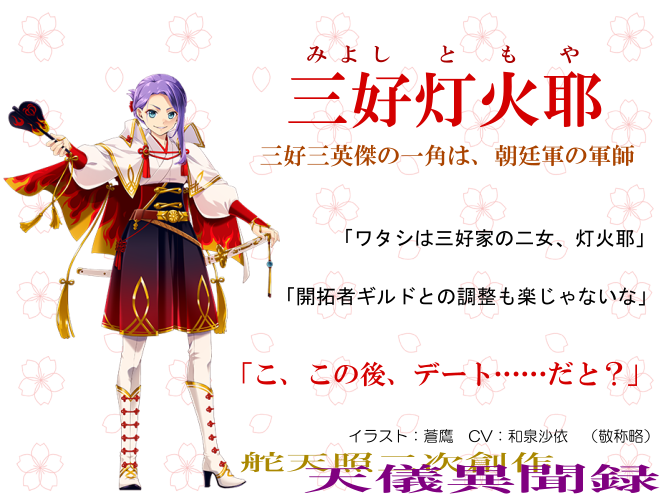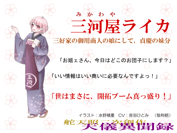朝廷家豊臣派「三好家」の御用商人「三河屋」の看板娘。
