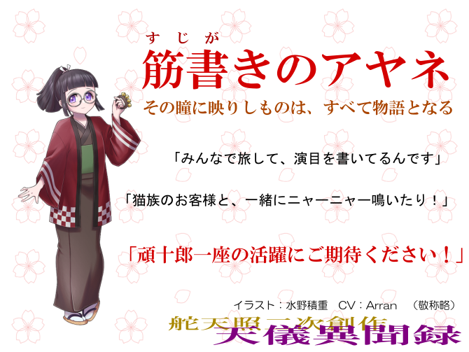 天儀を所狭しと旅しながら、道中で演目をこなし、一座の名を世に知らしめた縁の下の力持ち。
