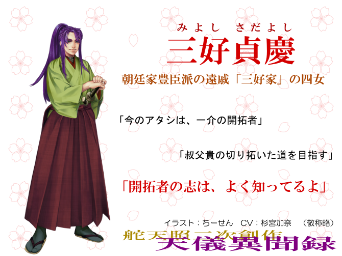 四女・貞慶とは違い、若くして朝廷に仕官し、現在は朝廷軍の軍師として活躍している。
